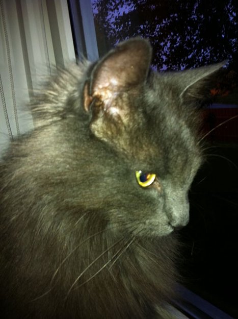 Katten ble funnet av en dame på Hovin. Han hadde et stygt sår på siden, som hun fikk behandlet.