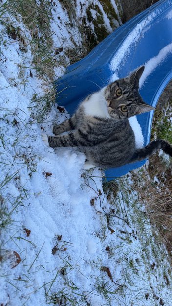 Emil har hvite ben og er hvit på halsen. Han er ikke fylt året enda og ikke vant med og være ute. Han er veldig kosete men kanskje litt redd for helt nye folk og inntrykk.