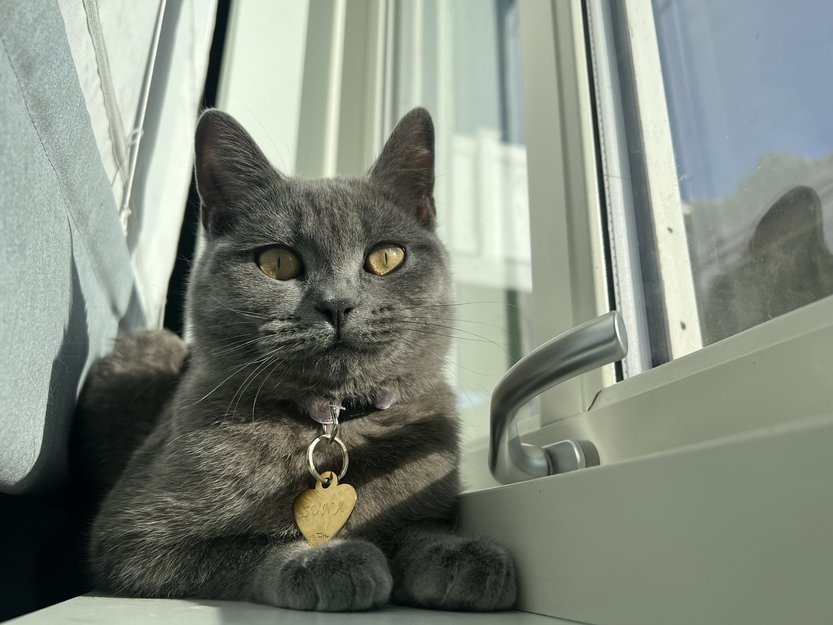 Ung hunnkatt, 9 måneder gammel. Beskjeden og redd fremmed mennesker. Litt striper på halen hennes. Hun har et lilla halsbånd med et gull hjerte på som er karvet med navnet hennes (Luna) og telefonnummeret mitt 98137071