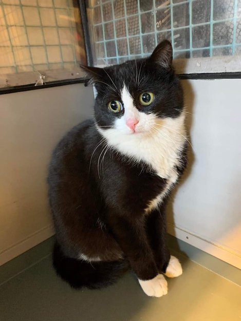 Ukastrert hannkatt på ca7-8 mnd. Er ikke id-merket. Har hvite poter, hvit i ansiktet, hake, bryst, mage