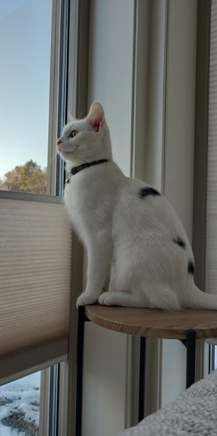 Cato er en redd katt, og kan være skeptiske til nye folk og redd biler.