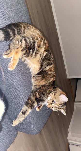 På det bakre venstre benet har hun en sort flekk som kjennetegn.