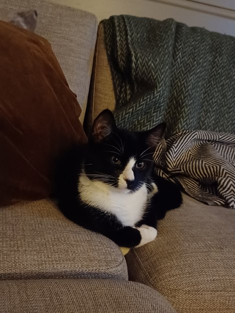 Han er kastrert og Chipet. Og veldig kosen og ikke spesielt redd for folk.