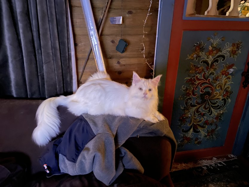 Kom ikke hjem 04.05.2023 i Ospeveien 14 3179 Åsgårdstrand. Langhåret Hvitt Main Coon jente puss.