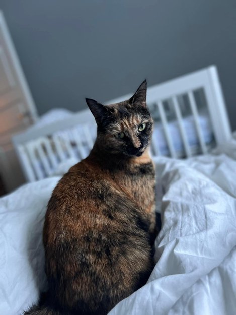 Lyst fjes og ellers skilpadde/tricolor. Litt lang og tynn.