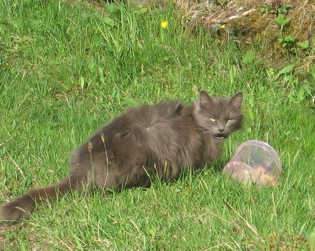 semilanghåret helt grå og vakker katt. Grønne øyne