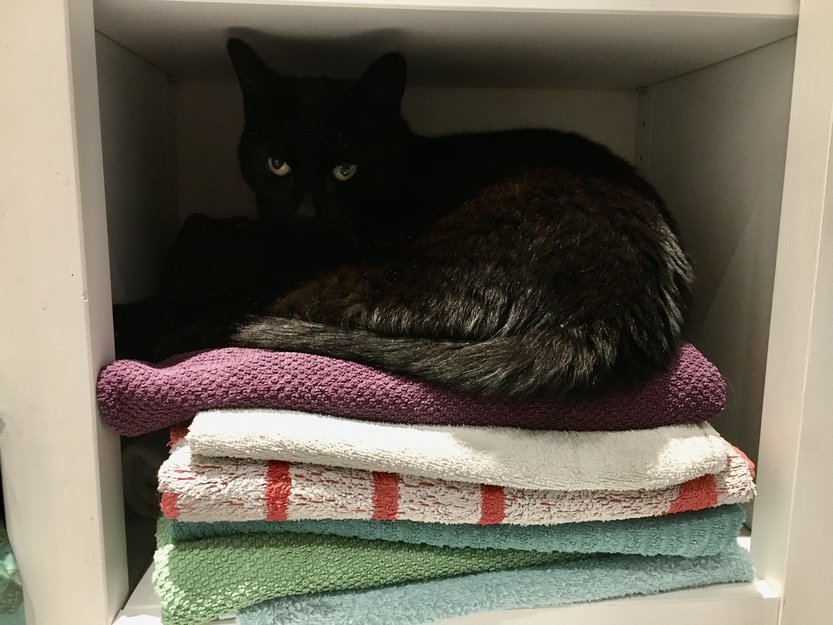 Hun har en grå skyggestripe i sitt venstre øye. Litt spiss snute, et par hvite enkelthår på høyre skulder, ett-to hvite værhår på venstre side.