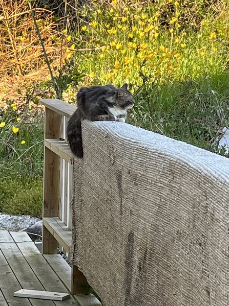 Har ikke tatt kontakt med katten annet enn at han legger seg på terrassen vår noen meter unna.