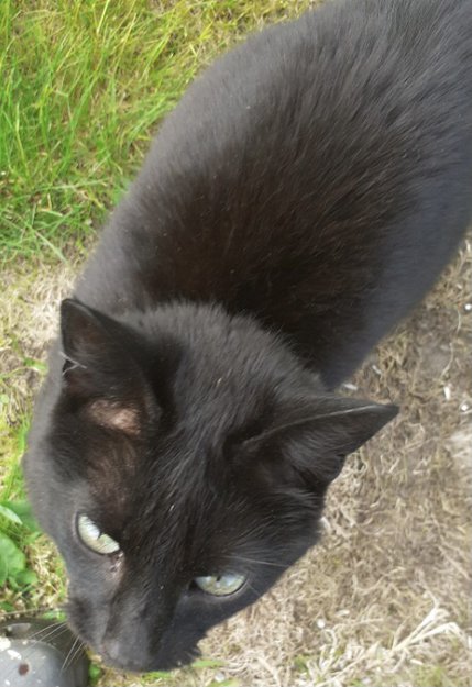 Er det noen som savner en liten svart katt med en liten hvit flekk under haka? Den har holdt til rundt huset vårt i Nesbuveien (Stavanger) i minst en måned nå. Den ser ut som en kattunge selv, men dessverre er den drektig. Det er ingen av de nærmeste naboene som kjenner til den. De trodde det var vår katt. Siden den er i den tilstanden den er i, hadde vi ikke hjerte til at den skal gå ute og føde der. Den er tam. Så enten har den en eier, eller at den er tam fordi en av naboene har gitt den mat.