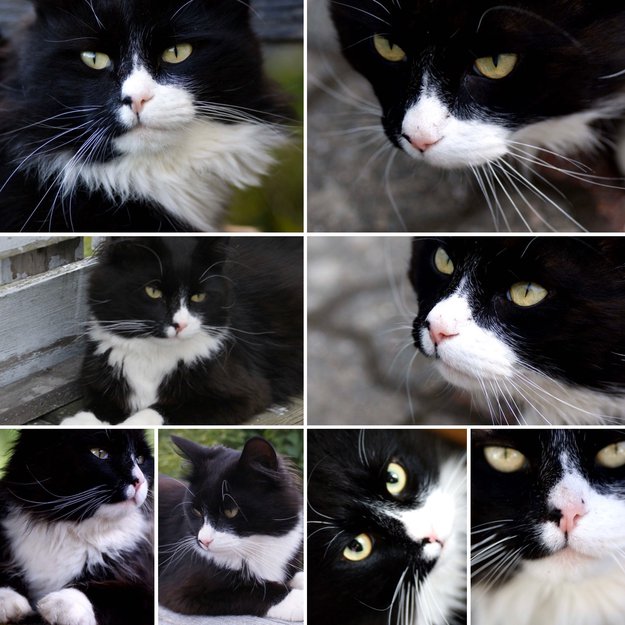 Stor hannkatt med hvite poter og enkel å kjenne igjen i ansiktet da han er hvit på ene siden, og ikke den andre.