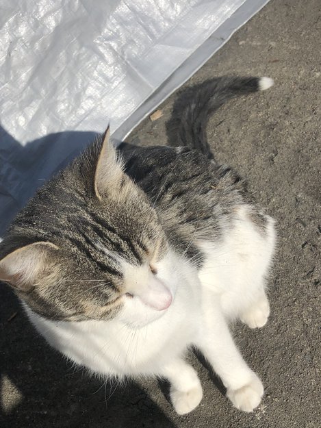 katten heter Molly. er en liten katt. er hvit, svart og brun. Halen er avsluttet med en hvit spiss. halen er alltid hevet opp.