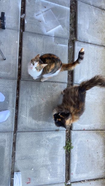 Funnet 2 jente katter, de har vært ute i balkongen min i 3 år. De er der hver dag og hele dagen lang. Blir matet og vannet, men det virker som at de er enten hjemmeløse eller mistet hjemme deres.