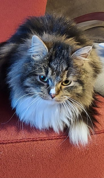 Alex er ganske liten, bruntabby med kvitt bryst. Han er litt skeptisk til framande når han er ute, så er ikkje så lett å få tak i. Mjauar høgt.