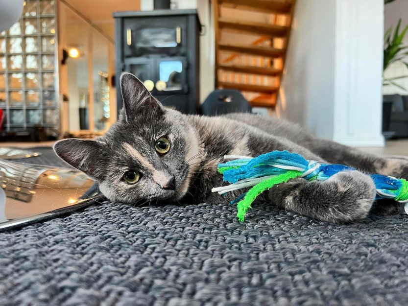 Kiara er en ungkatt på 1 år som nylig har startet å gå ut, hun pleier å holde seg i nærheten og komme tilbake på innkalling.