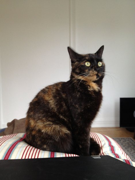Veldig sosial, ung katt. Kommer når du roper på henne.