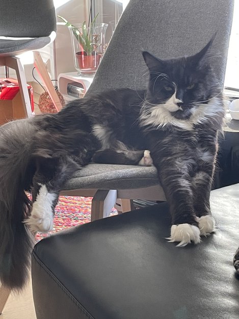 Main Coon,langbeinet,Nysgjerrig har lang pels på poter