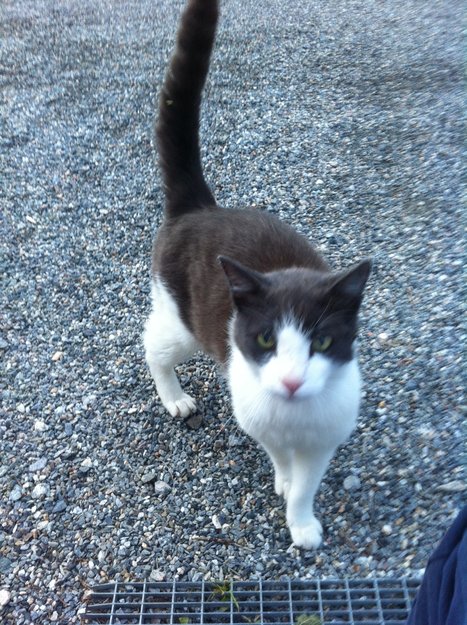 Katten har vi sett siden januar/februar 2012, den finner ikke hjemmet sitt, og har valgt å bli her hos oss, ser den hver eneste dag, den kan ligge bak i hagen vår eller på en av sofaene vi har ute.