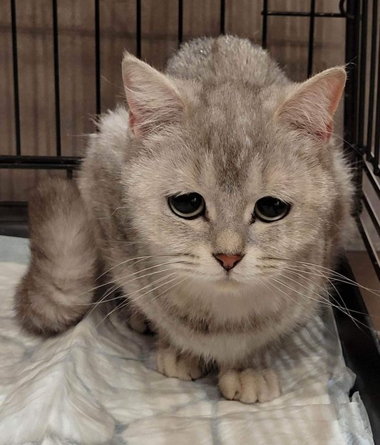 En tilsynelatende ung, veldig tynn og forvirret katt dukket opp på en adresse tidlig på morgenen. Den ble jagd av skjærer og holdt seg på terrassen på en adresse hele dagen. Katten bærer preg av å ikke ha spist på en god stund. Den er veldig tynn!! og var desperat etter mat. Katten er tam og har utseende som en britisk korthår. Fargen er silver-shaded og katten er tam. Den er nå tatt inn av Dyrebeskyttelsen Norge avdeling Oslo og Akershus og blir ivaretatt til eier er funnet. Eier må fremvise bilder eller annen dokumentasjon på at denne katten tilhører dem.