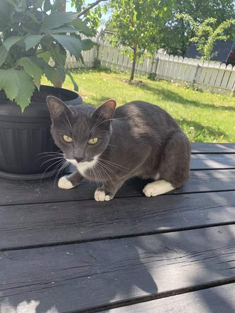 Halvvoksen katt som har gått rundt i området her noen uker. Katten virker skrubbsulten heletiden.