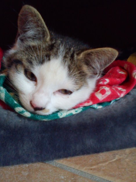 Et danske par oppdaget katten på Odden Campingplass. Da de reiste derifra sjekket de bilen nøye slik at katten ikke hadde gjemt seg inni bilen. De dro derfra til Maihaugen på Lillehammer og da de noen timer senere kom ut derfra så de at noen mennesker stod borte ved bilen deres. De kunne fortelle at den samme katten hadde krøpet fram fra under bilen. De ringte da Campingplassen, men der var det ingen som visste noe om denne lille kattunge. De fikk da levert den på Lillehammer Dyreklinikk fordi de var på veg hjem (til Sverige, så Danmark). vi ble så kontaktet av Dyreklinikken og klarte heldigvis å finne et fosterhjem for den lille pusen.