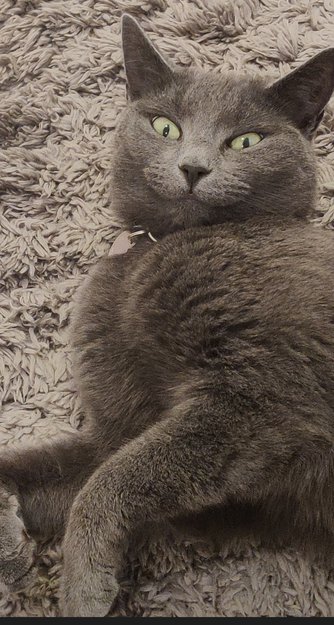 Rosa halsbånd med refleks. Grå poter. Liker ikke alle mennesker, hater å bli bært. Veldig søt, kan gjerne rulle seg på asfalten og hopper høyt. Ganske redd.