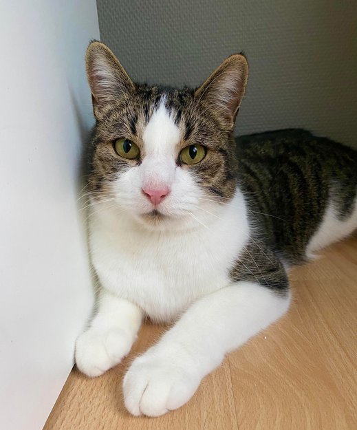 Moby kom seg ut ved et uhell. Han er ikke kjent i området fra før av da han kun er inne som fosterhjem i påvente av adopsjon. Han er veldig snill, men vi vet ikke om han vil søke seg til folk eller ei.
