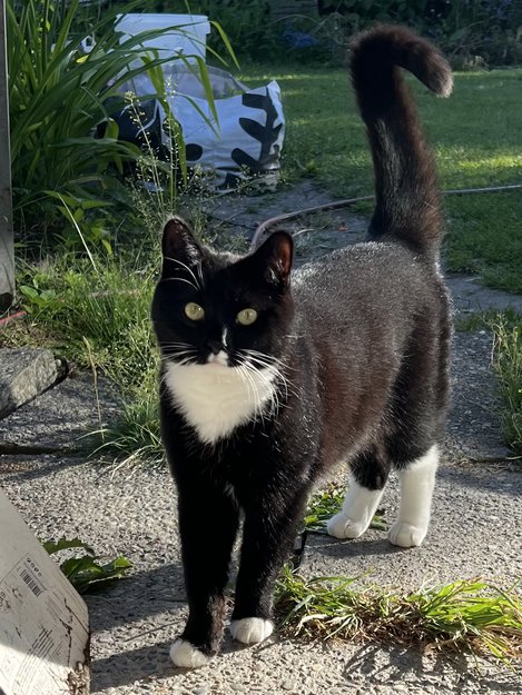 Amy er en utekatt med en satt rutine hvor hun sjekker inn med oss hjemme, men nå har vi ikke sett henne på over ett døgn. Dette er uvanlig og vi er litt bekymret.