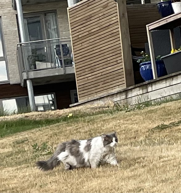 Katten oppførte seg litt rart. Virret rundt og virket forvirret. Sprang vekk når jeg kallet på den