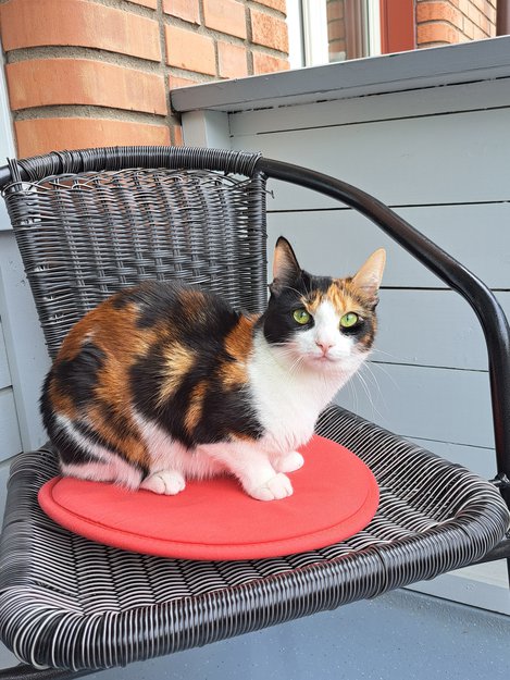 1 år gammel jentekatt. Hun heter TÅNDILL. Hun har vært ute et par ganger før, men er ikke vant til å være ute.