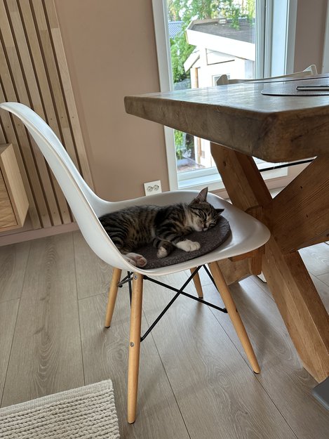 Liten kattunge som dukket her hos oss i ettermiddag. Altfor liten til å være ute, så nå er den inne hos oss.