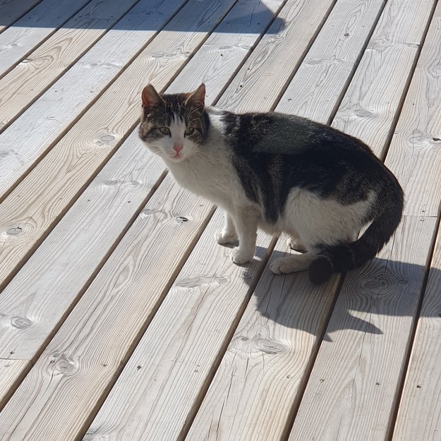 Liten hunnkatt har oppholdt seg hos oss I et par uker. Hun er tynn og sky. Men ser ut til å vært med mennesker før, da hun kommer bort innimellom å får kos. Går også inn npr døren står åpen. Har fire kattunger, kun sett disse en gang.