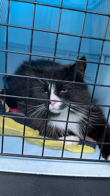 Katten er tatt inn i leilighet av bekymring for kattens helse. Vandret i område noen måneder men har ikke vist tegn til skade før nå. Katten er trygt inne hos meg med mat, vann og kasse.