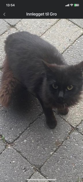 Katt som har oppholdt seg utenfor huset vårt i ca 2 mnd. Klarte fange den og kjørte til veterinær. Null chip, hunkatt. Meldte første gang på facebook 12/6. Kjørte til Dyrebeskyttelsen, var ingen der. Fått kontakt på messenger… men kan ikke gjøre noe i første omgang…..