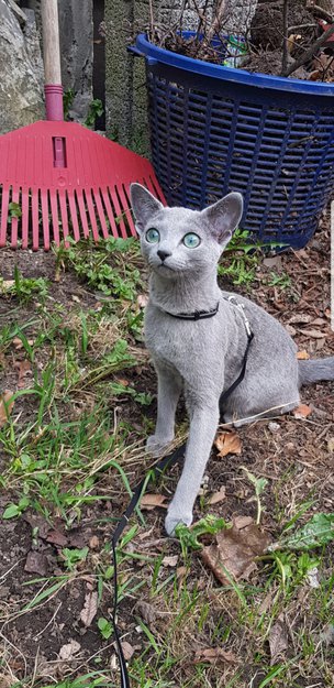 Hun har grønne øyne og store ører. Hun er bare 7 mnd gammel og liten, veier litt over 2kg.