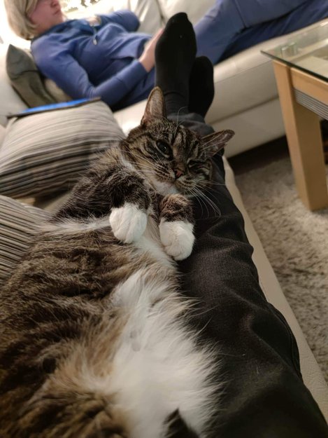 Katten elsker min mor, så da hun dro til min hytte og ropte på katta, så kom katta sprettende...