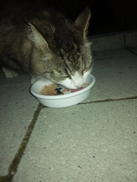 Sulten katt som er kommet til meg, tre kvelder på rad.