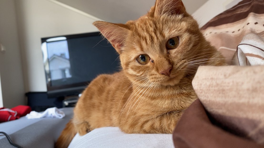 Og hu har sånn håret når du tar på katten, du får sånn håret på hånd når du tar på katten.
