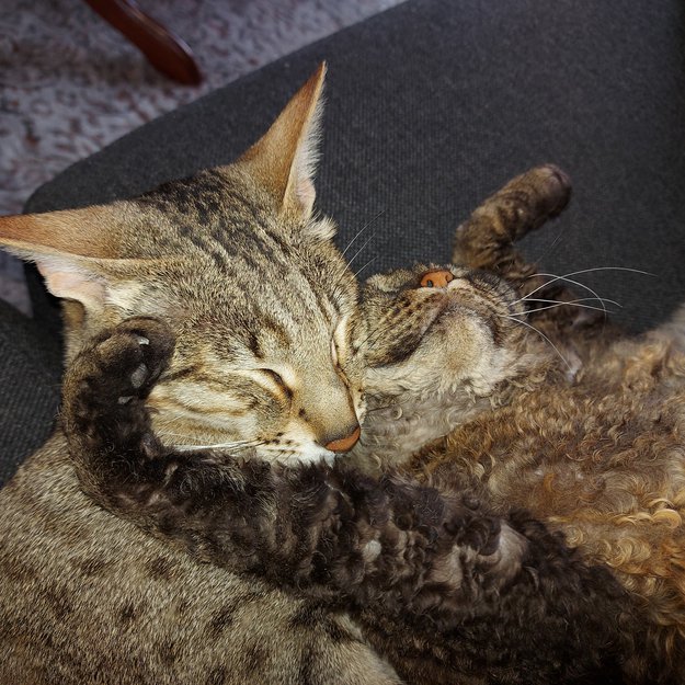 Stammer fra serval villkatt og ligner mye på den. Gepardflekker og striper i ansiktet