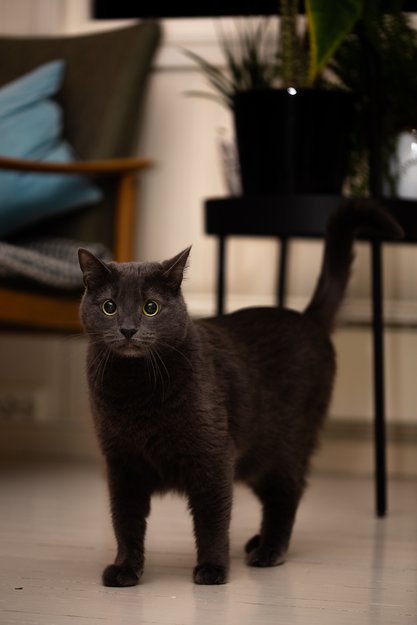 Ganske svær og robust katte. Fått littegrann hengemage på sine eldre dager.