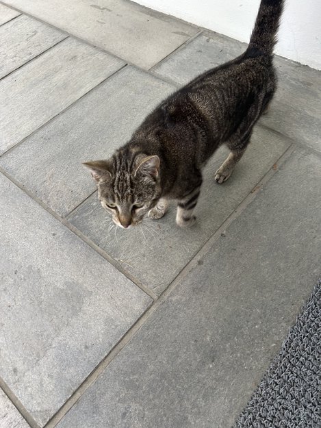 En katt er her natt og dag. Bor ute med vår katt i sommer. Den er veldig utadvendt og ivrig.