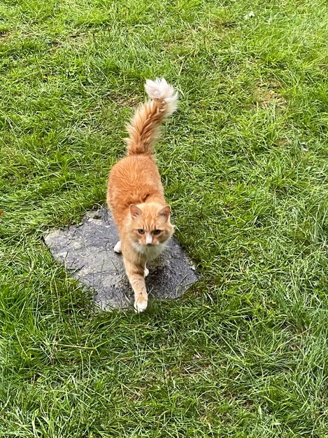 Katten var på oppsida av Sjusetevatnet / Øystese sundag 2. juli og var svært kosete og virka som den var ein familiekatt.