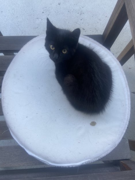 Pusen ble funnet utenfor oss og har blitt der i nå 24 t. Prater og snakker mye. Har et rødt halsbånd.