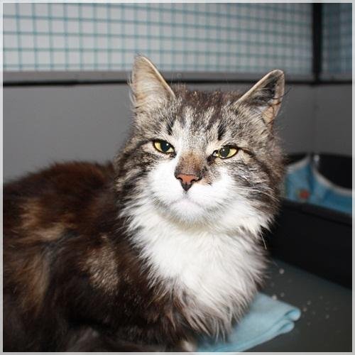 Katten har gått ute på Ugla siden i vår, og ble tatt inn av Dyrebeskyttelsen i Trondheim i juli.