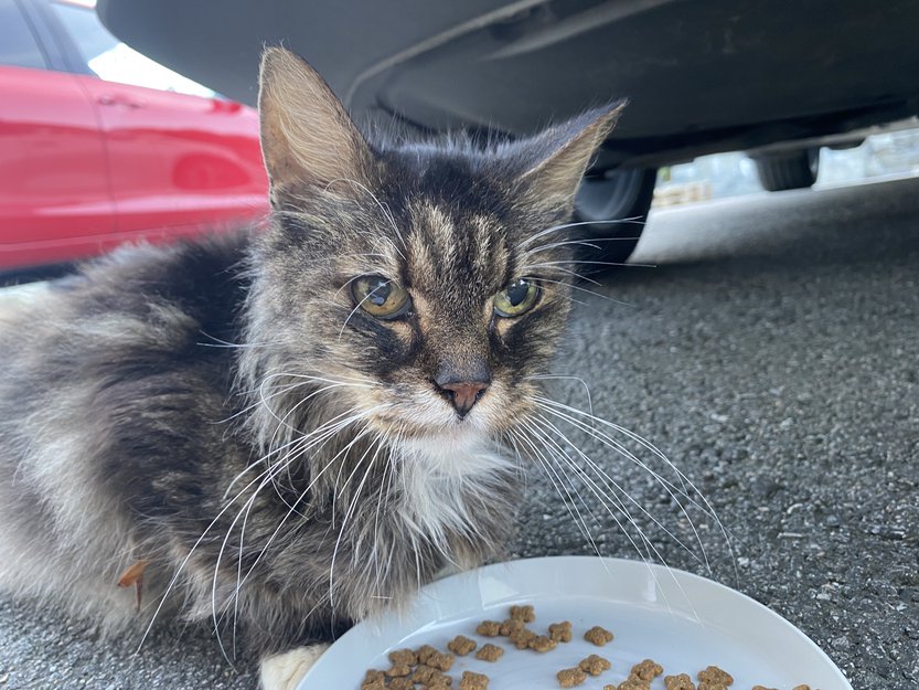 Funn av katt på Hjelle, Bjørnafjorden kommune. Ekstremt avmagret og bærer preg av å ha vært ute en stund. Den er veldig kosete, så den har nok hørt til et hjem engang…