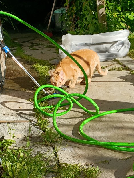 Har sett denne katten utallige ganger i hagen før, ansett den som velstelt og velholdt, har også antatt at den er eid av noen i nærområdet. Redd dyra Telemark har etterlyst eier på facebook (08.07.23), pr. d.d. har ikke en eventuell eier meldt seg.