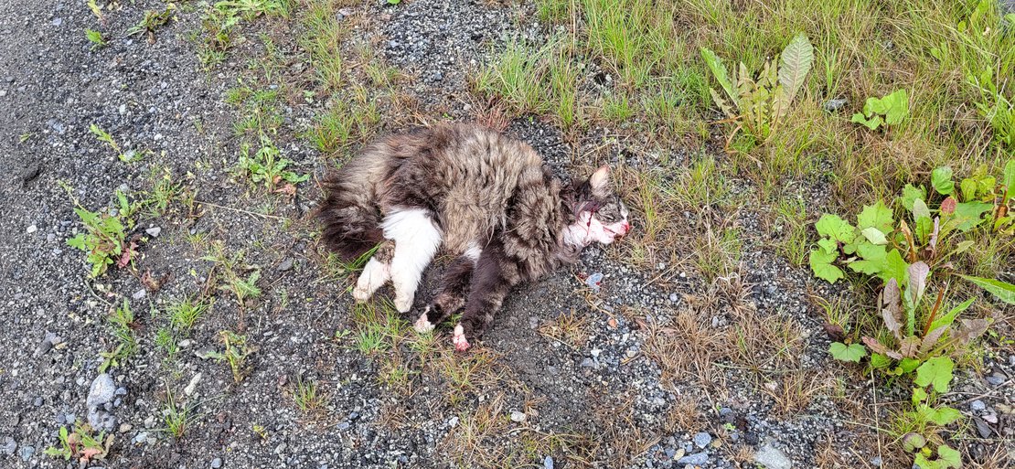Katten ble påkjørt å brakk ryggen og pådro seg andre skader.