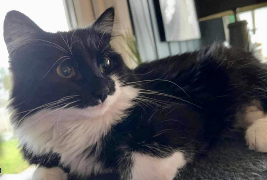 sort og hvit vekt ca 3,5 kg . hvit bless munn venstre side.