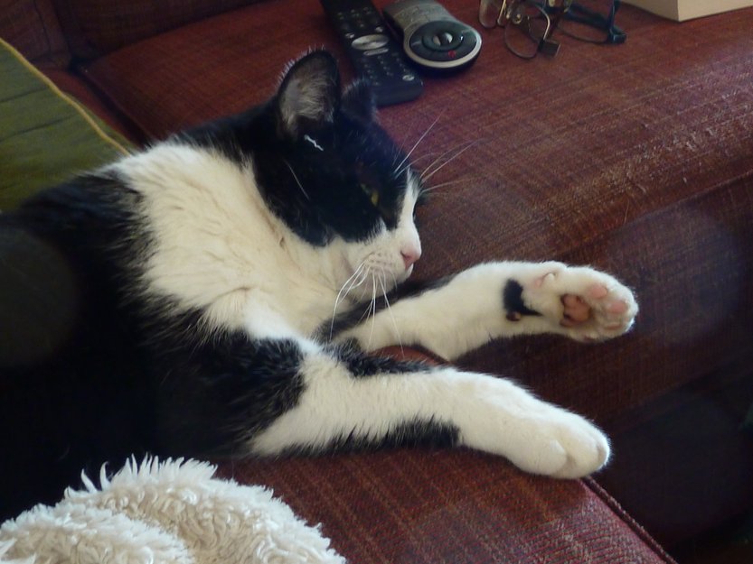 Tydeligvis en ung katt, anslagsvis 1 år gammel.