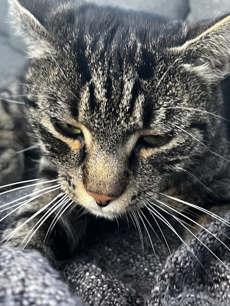 Ung katt som dukket opp hos oss i går. Den virker å være i fin form, men mjauer konstant. Vi har ikke sluppet den inn, men allikevel så har den ikke visst tegn på at den har noe andre sted å være.