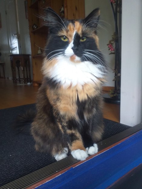 Langhåret sterilisert hunkatt, chippet. 5 år og heter Lizzy
